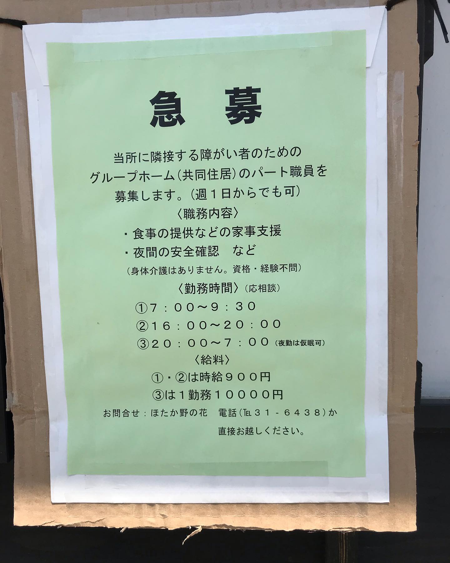 グループホームの世話人を募集しております。委細はご相談(浅野まで)ください。