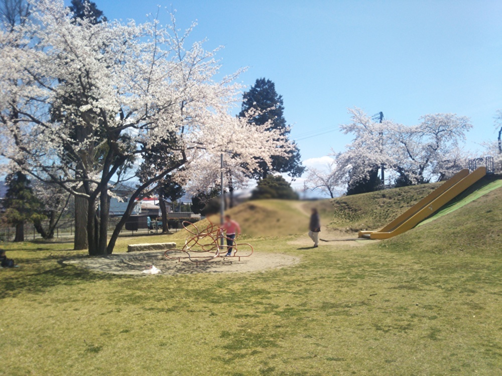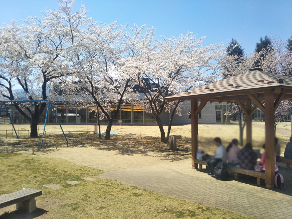 4月は1km弱くらいの水路沿いの道を散歩して、穂高学習交流センターみらいのとなりの三枚橋公園にお花見に行き、満開の桜をみながら桜餅を食べました。