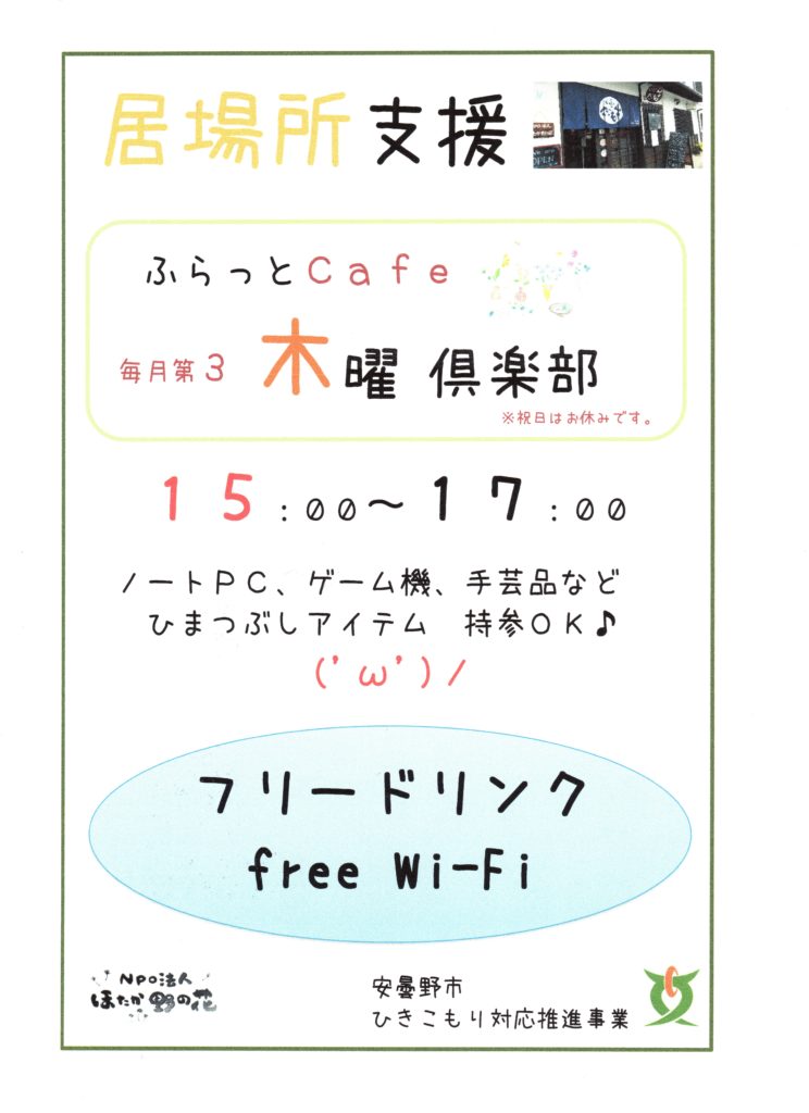 次回のふらっとカフェは3月17日(月)開催(‘◇’)ゞ